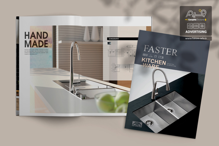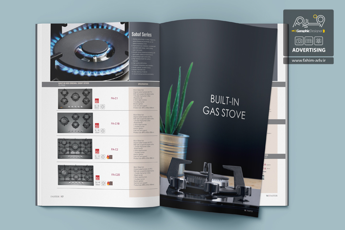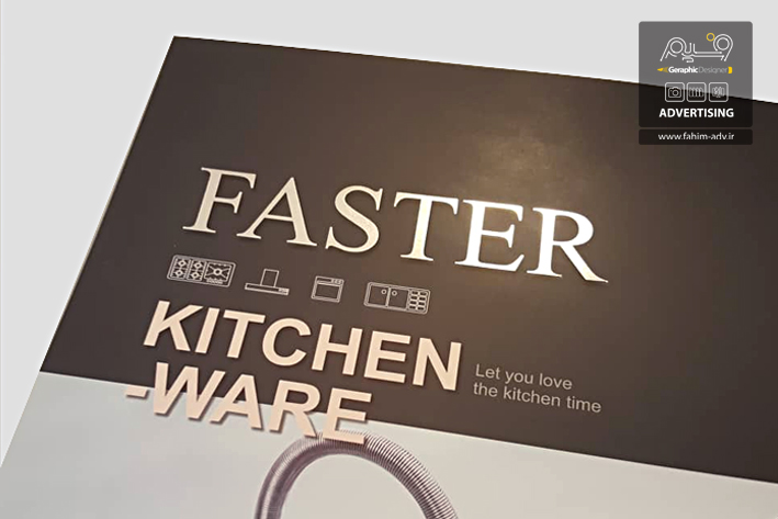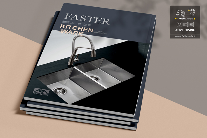 طراحی و چاپ کاتالوگ فاستر با تکنیک چاپ افست و سلفون مات برای روی جلد و نقره کوب شدن لوگو روی جلد اجرا شده است.